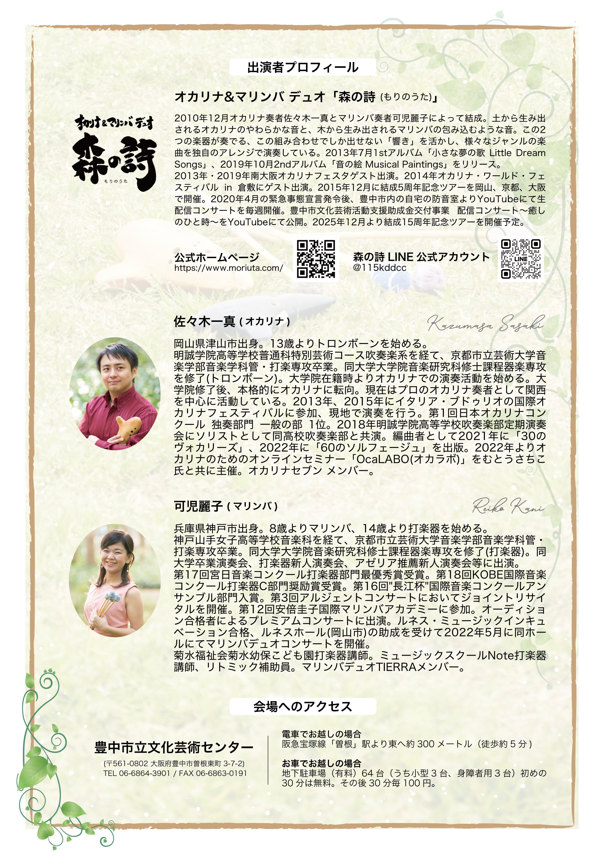 【チケット:前売り一般】オカリナ&マリンバ デュオ「森の詩」結成15周年記念コンサート